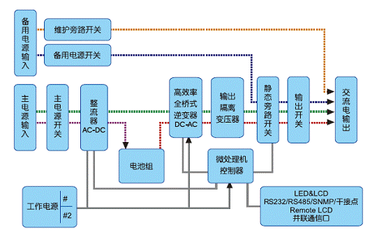 台达NT系列UPS采用先进的IGBT高频切换正弦脉宽调变技术设计,使UPS供电质量好、效率高、热损耗小、噪音低、体积小及寿命长,同时采用模块化设计可降低平均修护时间(MTTR),使维护工作更简便,藉由微处理器的数字化设计,简化复杂的模拟线路及大量减少零件数目,使系统更为安全可靠。